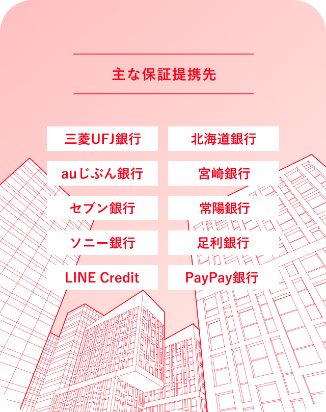 ローン・クレジットカード事業のお客さまが個人であることに対して、信用保証事業の直接のお客さまは提携している法人となります。ローン・クレジットカード事業で培ってきた与信・審査ノウハウと債権管理ノウハウを活用し、提携先のニーズに応じたオーダーメイドの保証スキームを提供することで、着実に実績を重ね、2025年5月末時点で保証提携先はのべ64社となっています。
