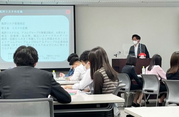 当社は、消費者の「保護」や「利益」を図り、消費者金融市場の健全な発展を目的として、大学生や高校生向けに出前講座を実施しています。「ローン・クレジット」などの金銭知識、家計管理や「消費者信用業界の概要」に関する講義を行っています。未来を担う学生たちが将来金銭トラブルに巻き込まれることのないよう、社会人になる前からお金の大切さを身につけていただきたいとの思いから、金銭啓発活動を実施しています。